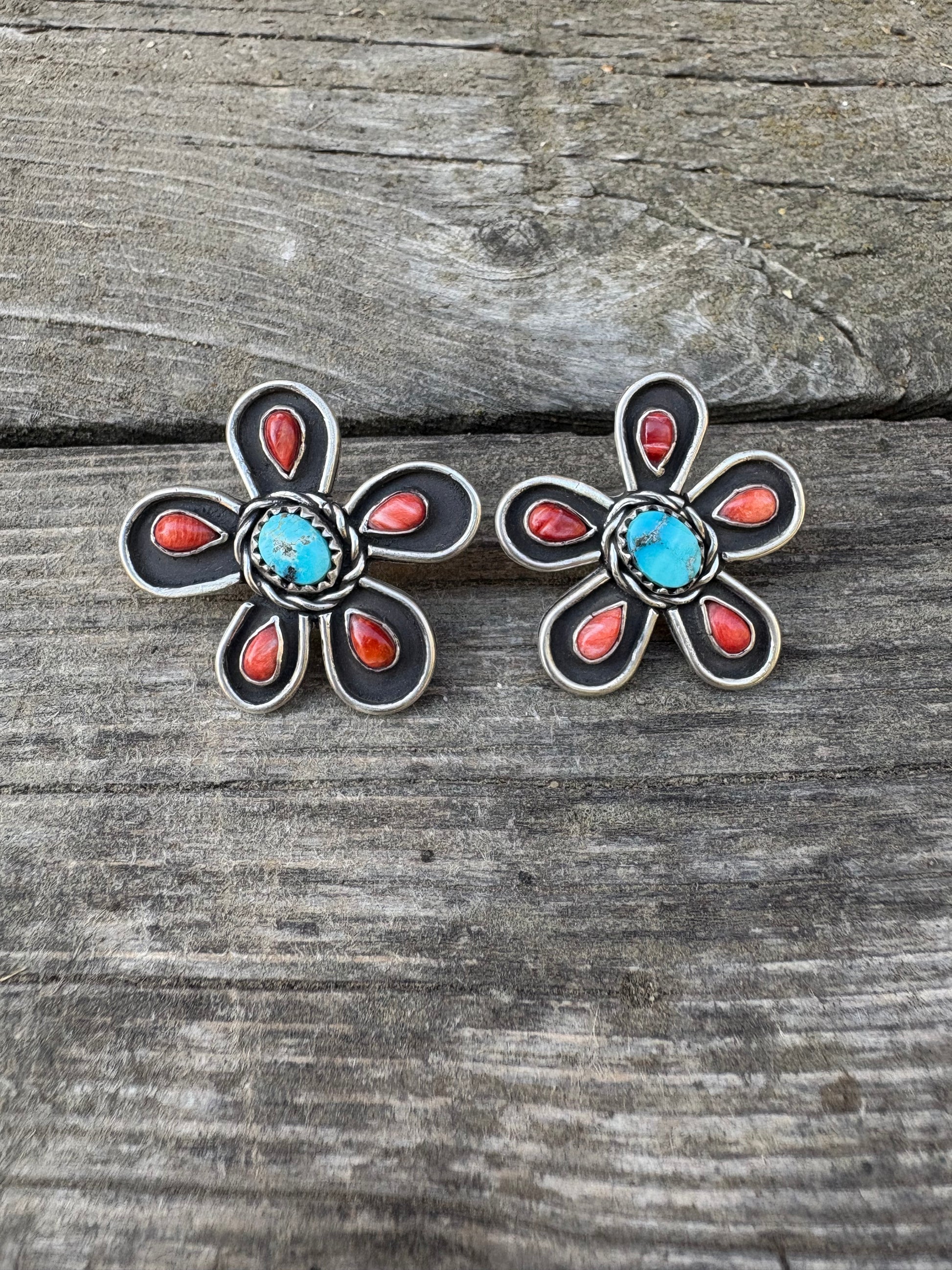Spiny Oyster and Riviera Turquoise flower earrings